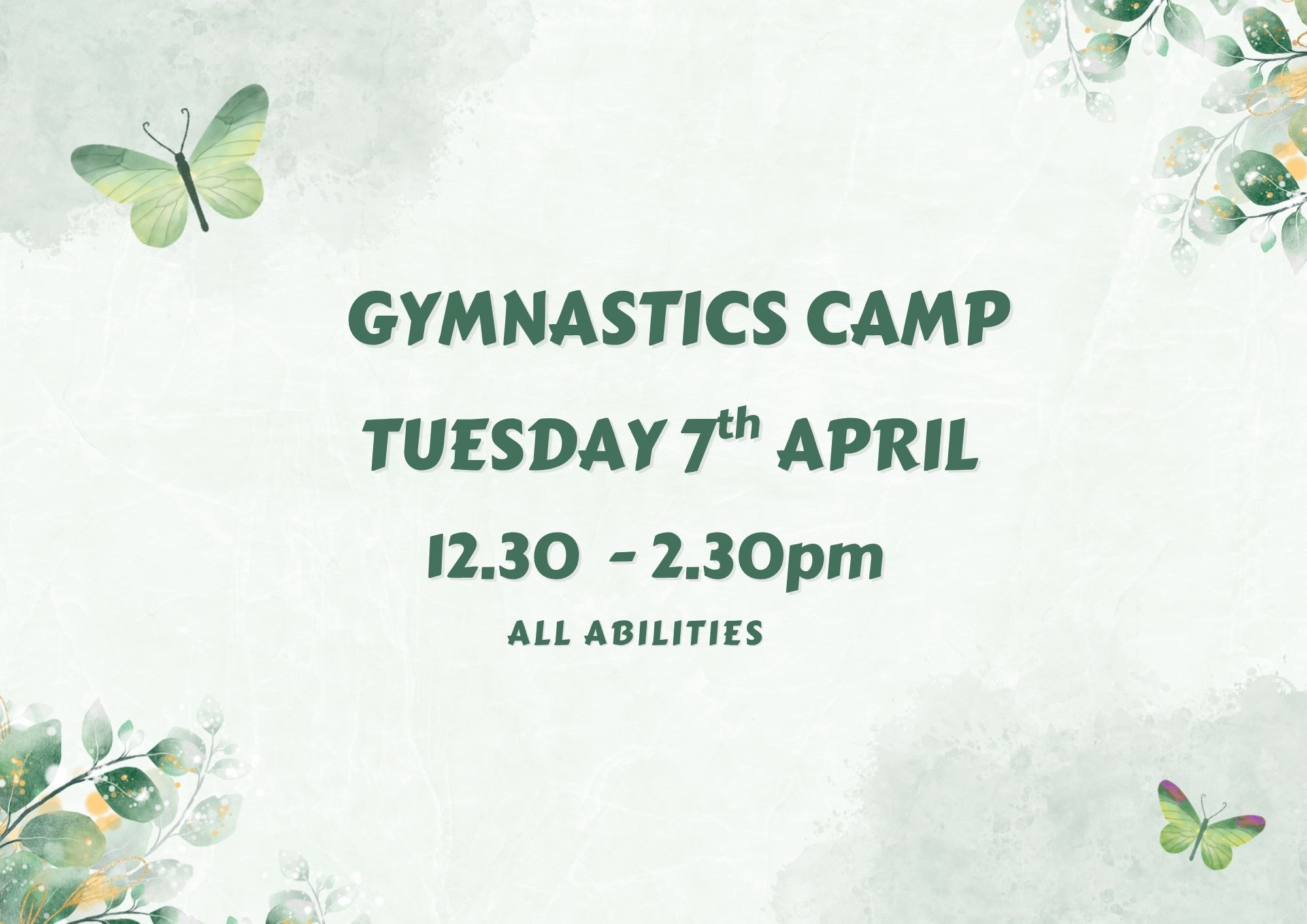 All abilities Gymnastics Camp Tuesday 7th April 12.30-2.30pm