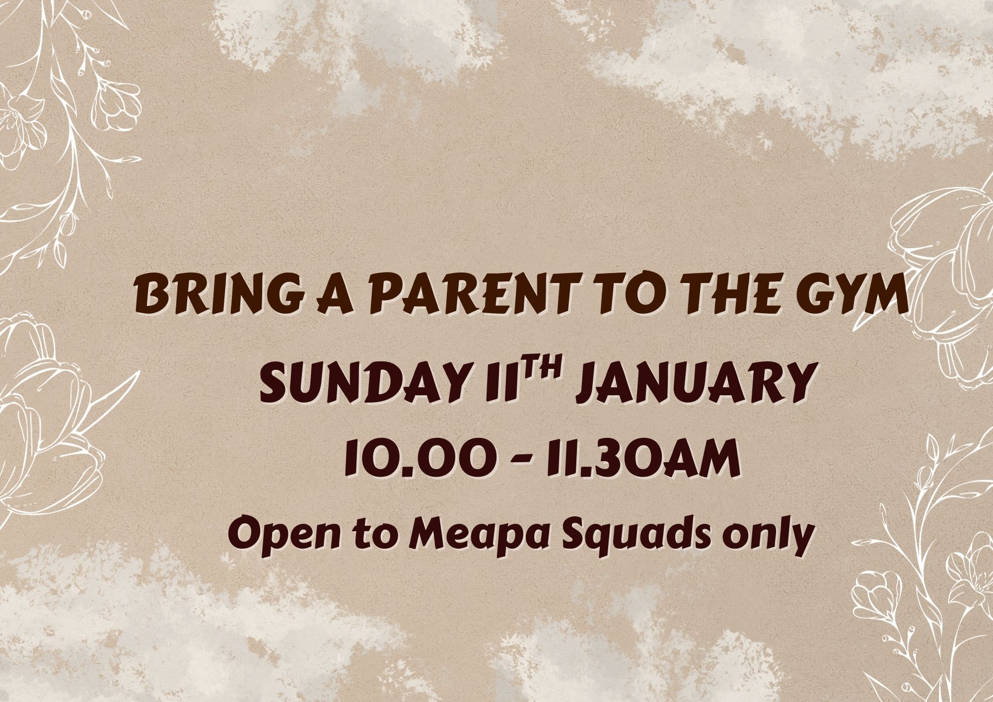 Bring A Parent to Gym Sunday 11th January 10.00 - 11.30am