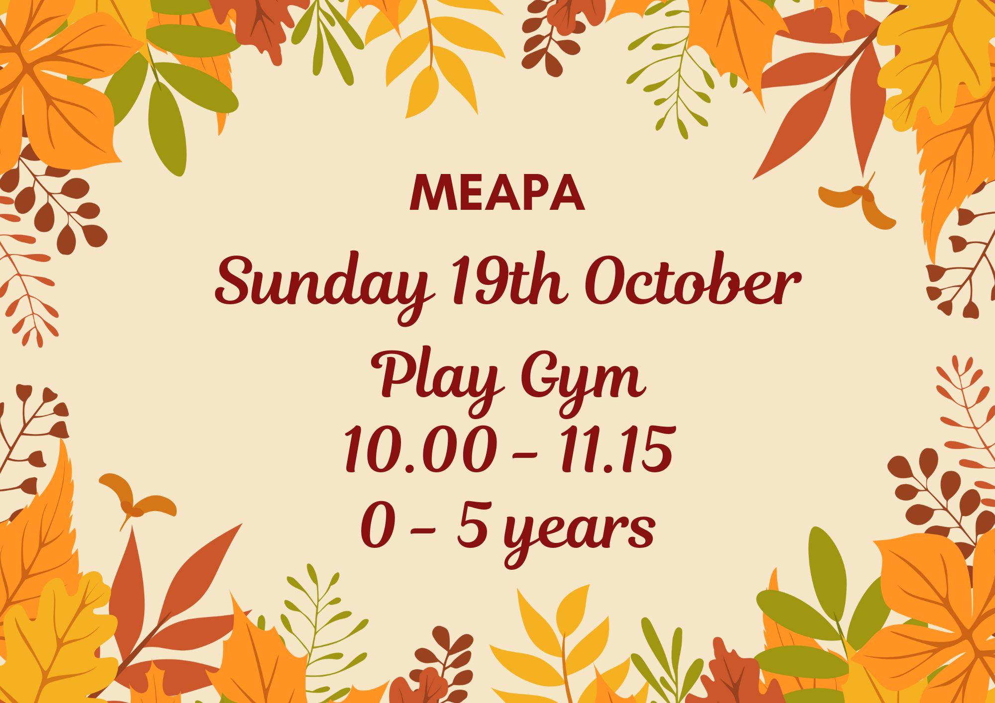 Play Gym Sunday 19th October 10.00 -11.15am