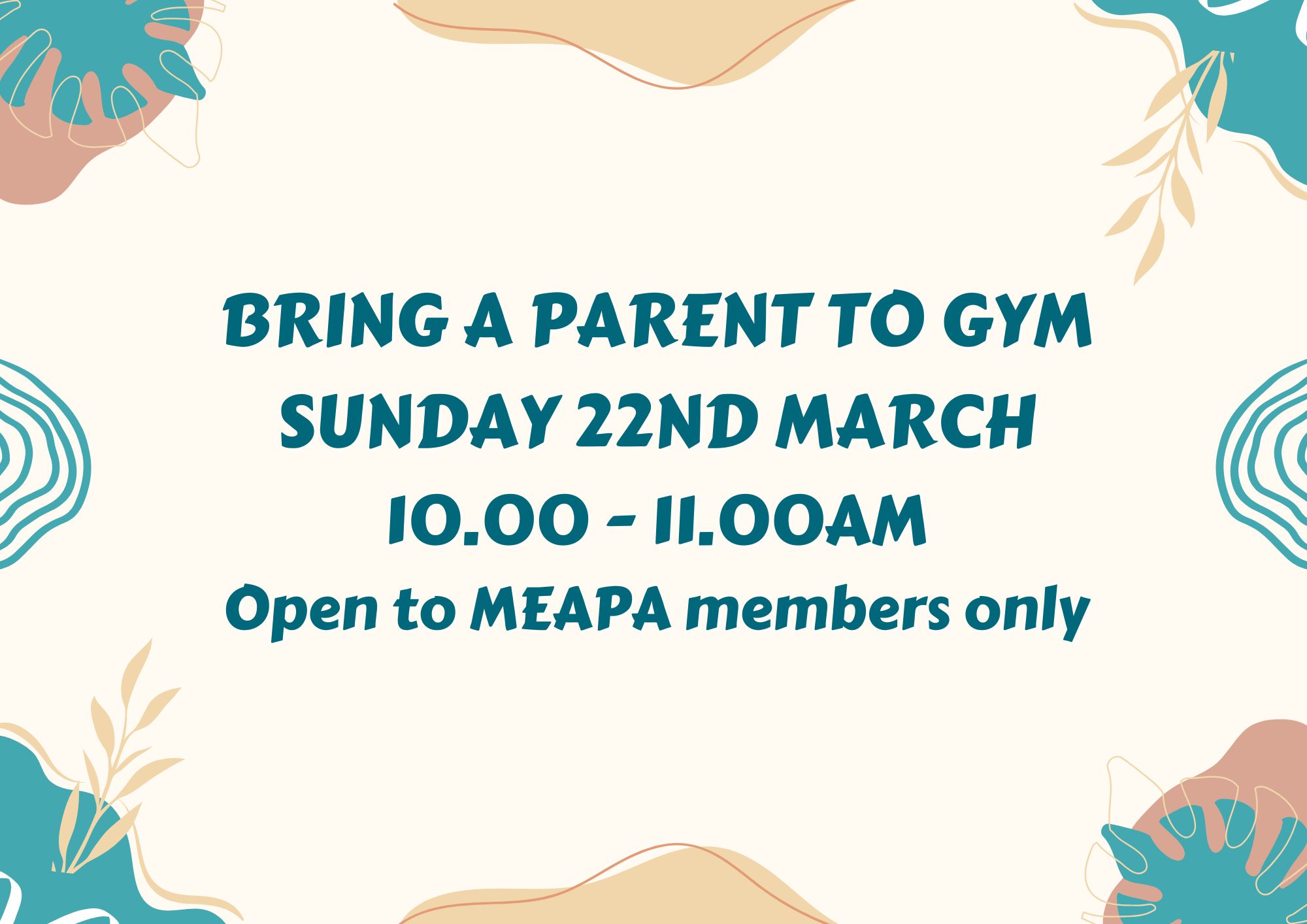 Bring a Parent to Gym Sunday 22nd March 10.00 - 11.00am